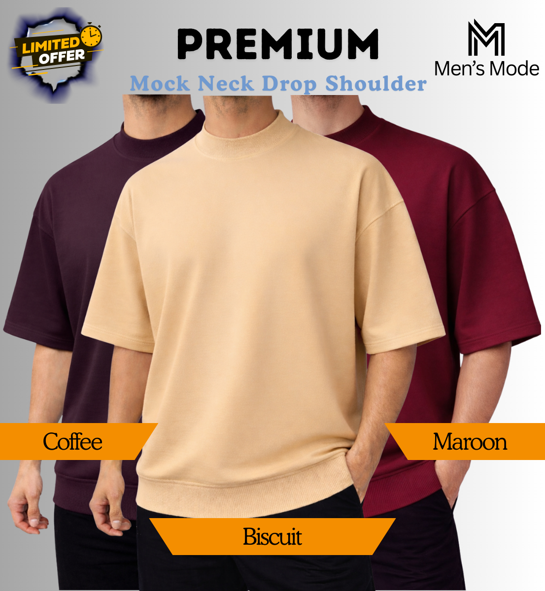 Upgrade your everyday style with our Mock Neck Drop-Shoulder T-Shirt, crafted for a perfect blend of comfort and class. Made from premium 220 GSM Baby Terry fabric, this piece offers a soft, breathable feel while maintaining a structured, high-quality look.