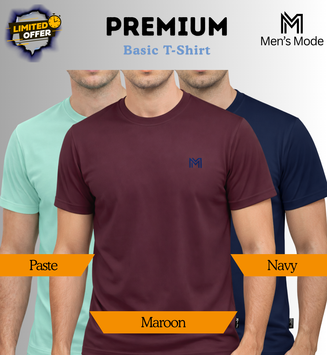 Premium Men’s Basic T-Shirt made from 100% cotton fabric (180–190 GSM). Soft, breathable, and comfortable for everyday wear. Perfect fit with durable stitching — a must-have essential for your daily wardrobe.
