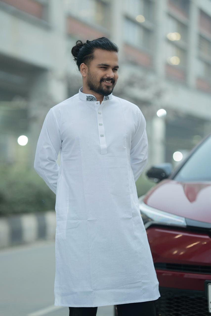Available in three classic colors — Black, White and Deep Olive, this panjabi is perfect for Eid prayers, family gatherings and special occasions.